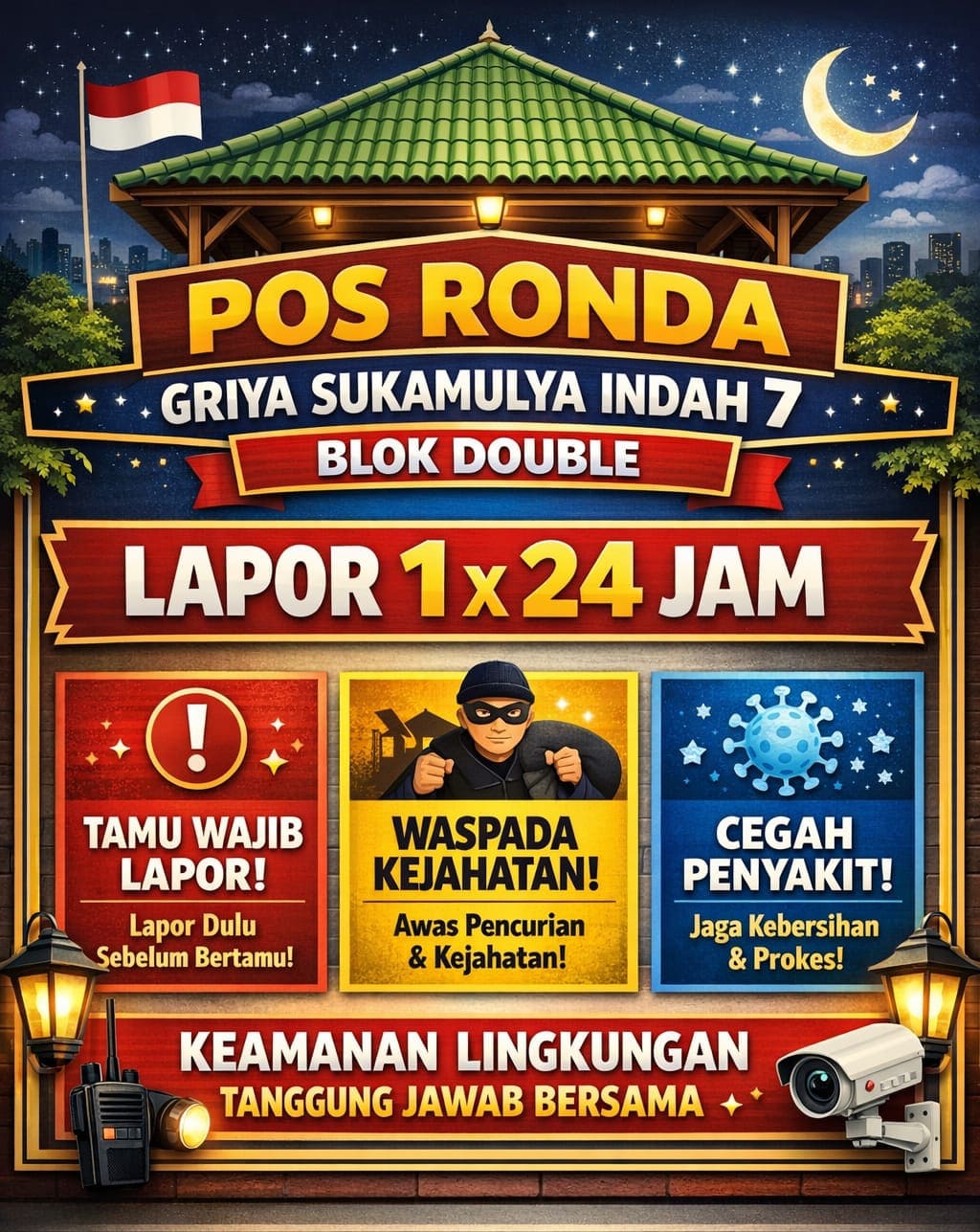 - Lapor 1×24 Jam: Warga dan tamu diwajibkan melapor dalam kurun waktu 1×24 jam untuk pendataan dan keamanan bersama.